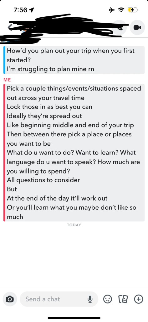 My friend texted me: “How’d you plan out your trip when you first started? I’m struggling to plan mine rn”